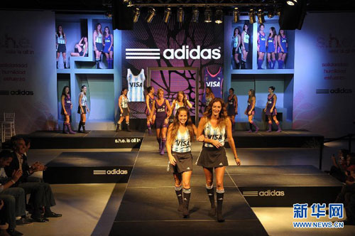 5月30日,阿根廷女子曲棍球队球员在舞台上展示将在伦敦奥运会上使用的新队服。阿根廷女曲是世界女子曲棍球一流强队,也是阿根廷代表团在伦敦奥运会上的夺金希望。新华社/美洲通讯社