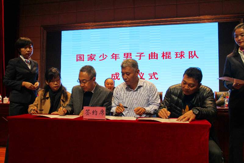 在揭牌仪式上,总局手曲棒垒球运动管理中心、甘肃省体育局、兰州新区科教文局、兰州体育学院(筹)签署了《共建国家少年男子曲棍球队四方协议》,雷军、杨卫为国家少年男子曲棍球队、国家少年曲棍球训练基地揭牌,并向兰州体育职业学院(筹)院长李雄授牌。李雄院长表示,学院将以此次授牌命名为新的平台和起点,谋划长远,高点定位,务实创新,锐意进取,坚定不移地走内涵发展、特色发展、优质发展之路,努力把学院建成西部一流的后备人才培养基地和专业化院校,为完善人才培养输送体系、为中国曲棍球项目的稳定发展提供人才保障作出新的贡献。