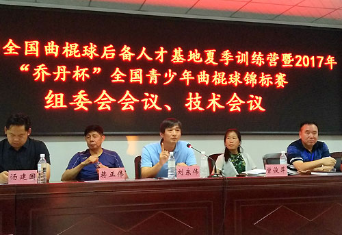 兰州新区教育科技文化局副局长曾俊萍,中国曲棍球协会青少年发展委员会主任蒋正伟,甘肃紫金实业集团总经理汤建国,中国曲棍球协会青少年发展委员会副主任、兰州市体育运动学校校长李雄,中国曲棍球协会青少年发展委员会副主任马春奇,中国曲棍球协会科研委员会副主任金成吉,兰州市棒垒曲运动协会秘书长左小琴,兰州市体育运动学校教务科长彭宏加,赛事技术代表张宏伟,裁判长田一妙,中国曲棍球协会专家组各位成员和各参赛队领队、教练员参加了会议。