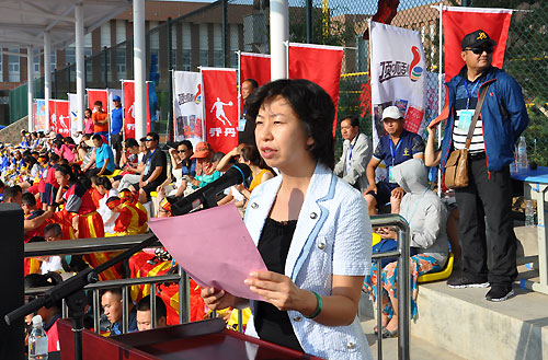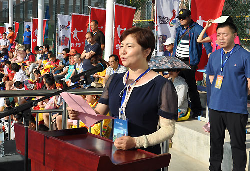 甘肃省体育局党组成员、副局长丁慧茹为大赛致开幕辞,代表甘肃省体育局向参加本次锦标赛的运动员、教练员、裁判员和各位来宾表示热烈的欢迎,向为锦标赛的召开精心准备、做出贡献的兰州市体校、兰州市65中、银滩路小学表示衷心的感谢。丁慧茹副局长希望通过本次比赛和本届训练营,进一步推动曲棍球运动的普及和提高,促进全国各省市、自治区的交流,增进友谊。同时,丁慧茹寄语希望裁判人员恪守体育职业道德,严格执法,公正裁判;希望各代表队实事求是,遵循“友谊第一、比赛第二”和“重在参与、重在学习、重在提高、重在娱乐”的原则,赛出风格,赛出友谊;希望运动员用速度与激情展示青春的活力,用汗水与成绩演绎曲棍球的精彩,并预祝本次比赛圆满成功。