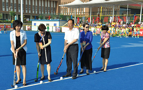 华奥星空讯 7月17日,第九届全国曲棍球奥林匹克后备人才基地夏季训练营暨“乔丹杯”2017年全国青少年曲棍球锦标赛在兰州市体育运动学校曲棍球场正式开幕,国家体育总局青少司青训处调研员、副处长郭荣出席开幕式并为训练营和比赛宣布开幕。