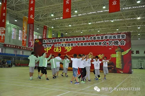 华奥星空讯 7月21日晚,兰州体育职业学院2号馆灯火辉煌,第九届全国曲棍球奥林匹克后备人才基地夏季训练营暨“乔丹杯”2017年全国青少年曲棍球锦标赛举行了丰富多彩的文艺晚会,中国曲棍球运动协会青少年发展委员会主任成员和学校领导出席了活动。